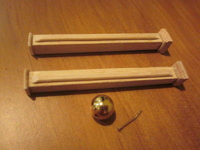 Los canecillos para la parte de abajo del balcón , están realizados con trocitos de madera , encolados , lijados y dándoles forma con una "Dremel "